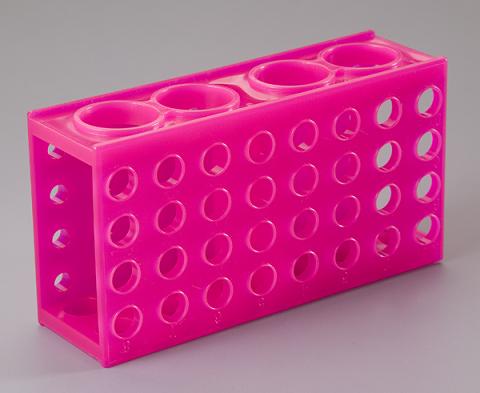 Light Labs carries 4-Way Racks for microcentrifuge tubes and 15 and 50mL Centrifuge tubes. The racks hold 1.7mL microcentrifuge tubes on one side, .65mL microcentrifuge tubes on another side, 15mL centrifuge tubes on another side, and 50mL centrifuge tubes on the final side. The racks come in assorted colors and are packaged 5 racks/pack.