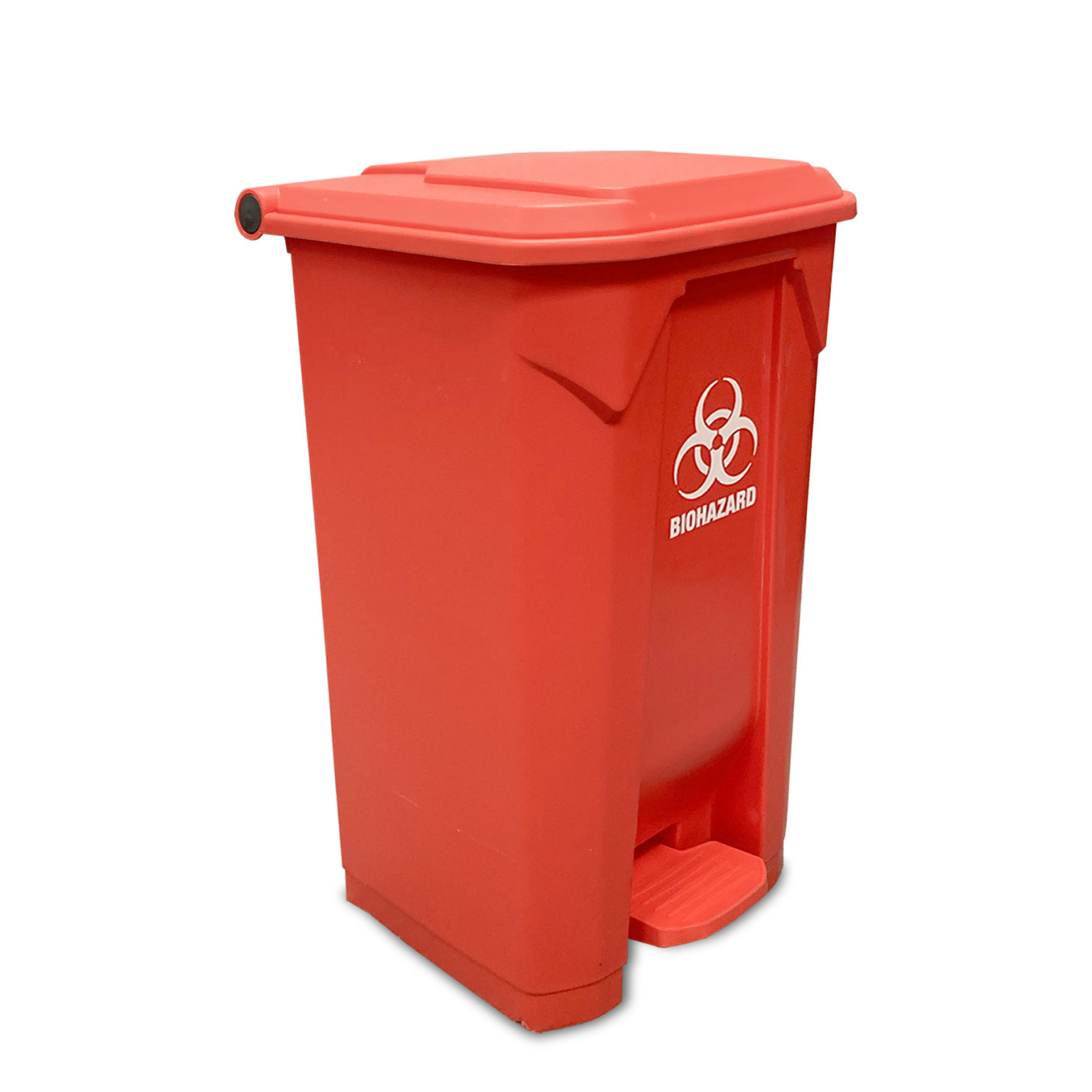- Biohazard Bin XL, large, 23 gallon / 87L, with foot pedal operated lid, 19 x 19 x 33in. / 48 x 48 84cm (W x L x H), 1/ea